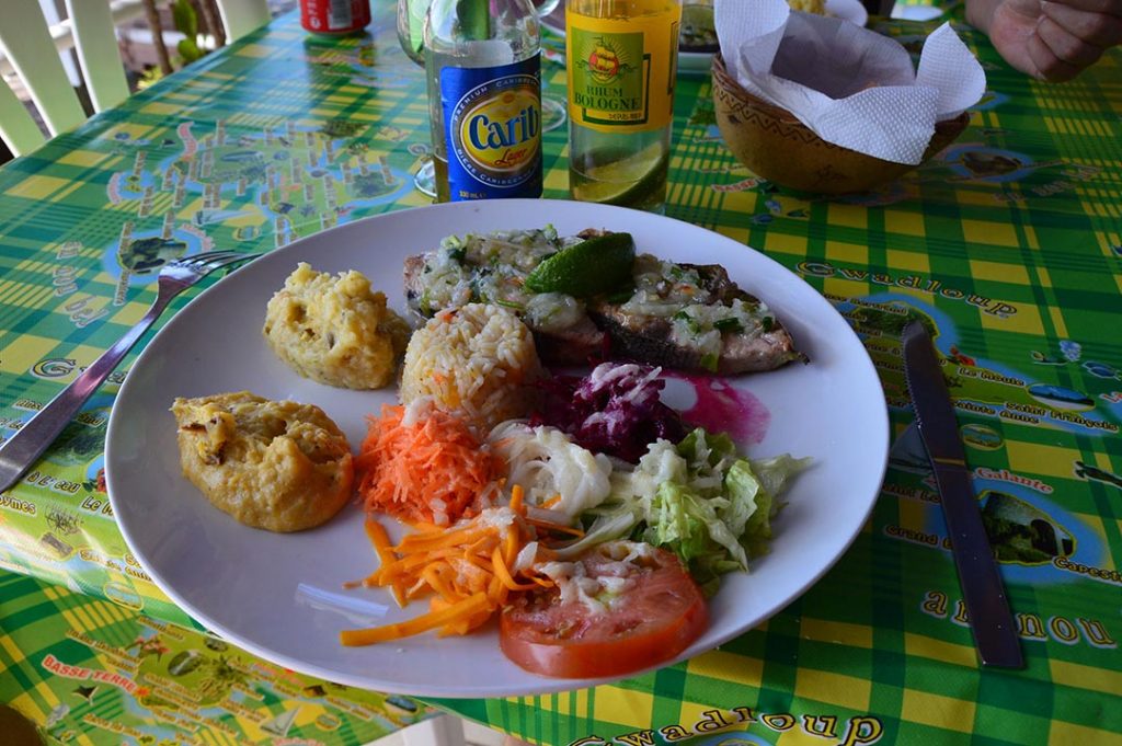 Für die Selbstversorgung gibt auf der ganzen Insel ausreichend Supermärkte der Ketten Carrefour, ECOMAX oder Leader Price. Auf den Teller kommt bei den Einheimischen vor allem frischer Fisch, typisch für Guadeloupe ist das die milde Currymischung colombo. In jedem Fall ausprobieren solltet ihr die fahrenden Imbissbuden, die über die ganze Insel zu verteilt sind. Hier gibt es das leckere Bokit, ein Fladenbrot in verschiedenen mit Varianten aus wahlweise Fisch oder Hühnchen – einfach lecker.