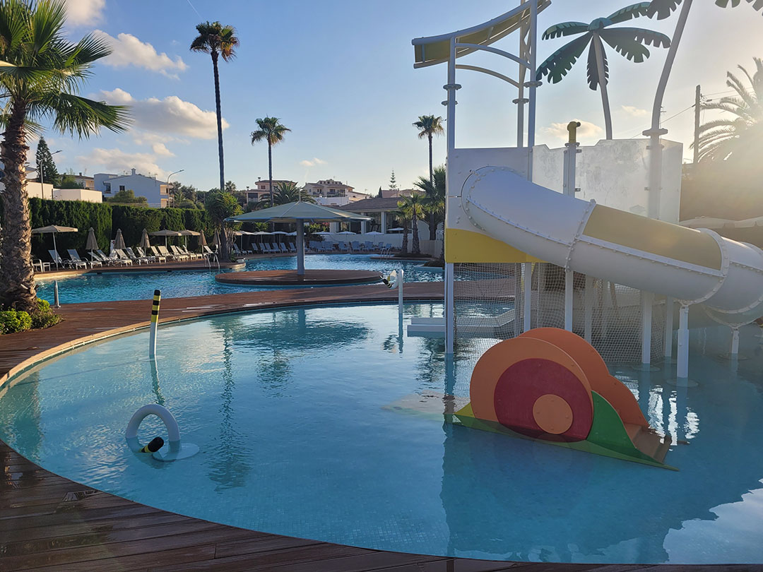 JF Portocolom Suites: Familienhotel mittlerer Größe mit Kinderpool und Spielplatz, erst kurzfristig renoviert, Frühstück und Abendessen entsprechend der Hotelkategorie völlig okay, Getränkepreise sehr fair, teilweise Abendprogramm (ABBA-Show, Zauberer etc…)